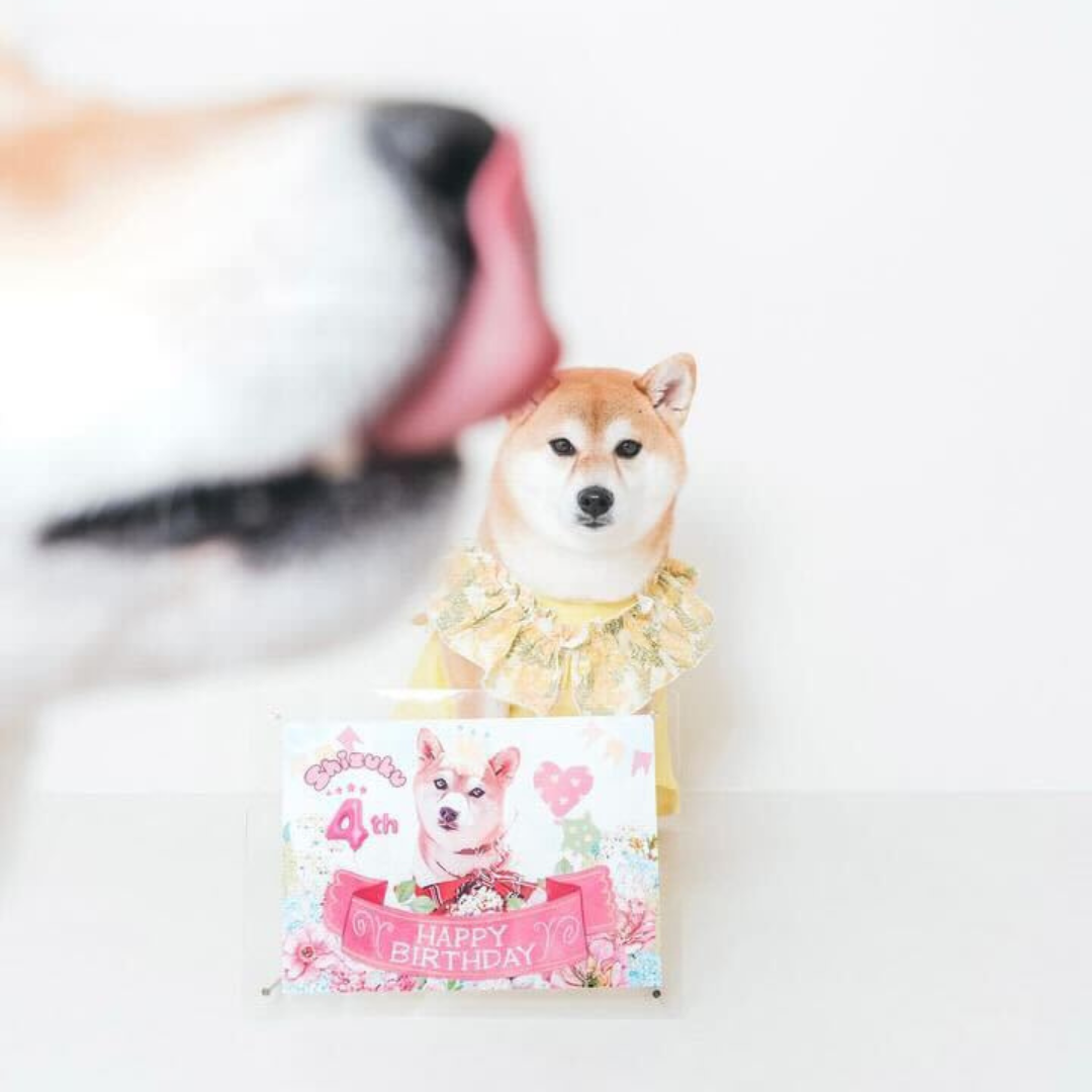 柴犬4歳の女の子しずくです。遊ぶの大好き、食べるの大好き、オシャレ大好きな女の子です。